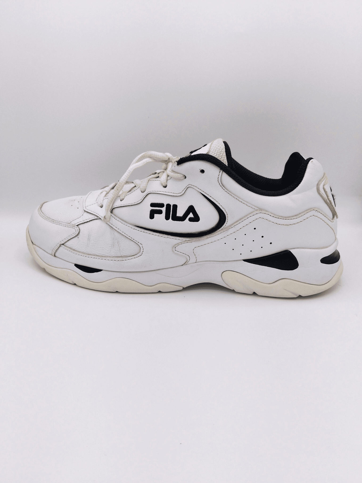 Features Fila’s embroidered branding and a vintage-inspired silhouette that gives a nod to classic athletic designs.